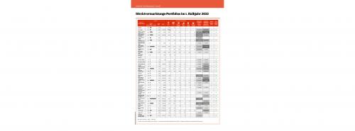 Die Tabelle über das Direktvermarktungs-Portfolio im 1. Halbjahr 2022. Zur Vollansicht bitte auf das PDF klicken Quelle: E&M |