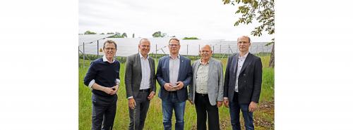v.l.n.r.: Stefan Müller (Vorstand Enerparc), Wolfram Günther (Staatsminister Sachsen), Mirko Pollmer (Bürgermeister Zeithain), Dieter Wamser (Leiter EVGZ) und Daniel Dechmann-Annus (Projektleiter Zeithain von Enerparc) Quelle: Enerparc |