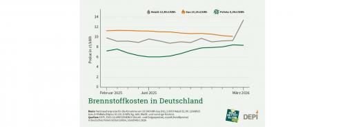 Kosten für Pellets, Gas und Heizöl im Vergleich (Zum Vergrößern auf die Grafik klicken) Quelle: DEPI |