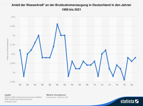 % des in Deutschland erzeugten Bruttostroms aus Wasserkraft gewonnen – das entspricht 19,7