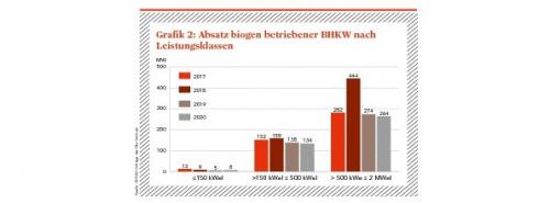 Gemischter Einfluss der Corona-Pandemie auf den BHKW-MarktInsgesamt ist der Absatz 2020 das zweite Jahr in Folge gesunken. Nach dem Höchstwert 2018 mit 3.300 MW