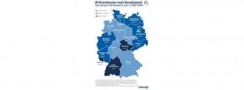 Durchschnittliche Stromkosten nach Bundesland − für eine vergrößerte Ansicht bitte auf die Grafik klicken − Quelle: Check24 |