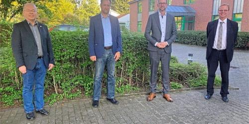 Manfred Gehrke (r.) ist der erste Geschäftsführer der Stadtwerke Marl. Den Aufsichtsrat führen Thomas Terhorst (2.v.r.) und Andreas Täuber (2.v.l.), links im Bild: Bürgermeister-Vertreter Michael Bach Quelle: Stadt Marl |