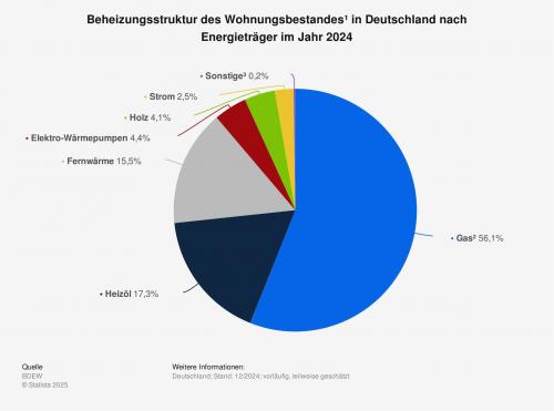 Prozent aller Wohnungen in Deutschland mit Gas beheizt, während der Anteil des Energieträgers Heizöl rund 17