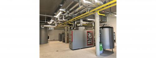 kW thermisch. Diese werden für Spitzenlasten ergänzt durch zwei Viessmann-Gasbrennwertkessel mit einer thermischen Leistung von 762