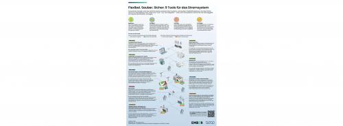 Für eine stabile Stromversorgung angesichts schwankender Einspeisung aus Wind- und Solarenergie braucht Deutschland mehr Flexibilität im Energiesystem. Der britische Klima- und Energie-Thinktank Ember hat in einer neuen Infografik neun Maßnahmen zusammengestellt, die kurzfristig zur Verfügung stehen und vier zentrale Funktionen erfüllen: Energie speichern, Verbrauch verlagern, Strom verteilen und Versorgung sichern. Ember sieht diese Technologien als eine wirksame Alternative zu fossilen Reservekapazitäten.