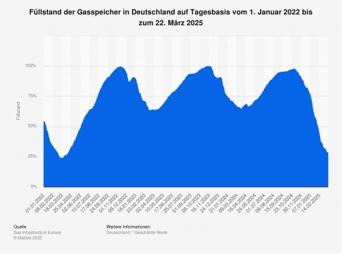 TWh. Wie die Statistik veranschaulicht, sind die Füllstände der deutschen Gasspeicher im Laufe eines Jahres, beziehungsweise einer Heizperiode, deutlichen Schwankungen unterworfen. Am 22.