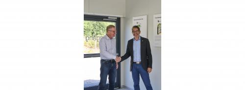 Rolf Herrmann, Head of Geothermal Engineering von der Deutschen Erdwärme, (links) und Staatssekretär Andre Baumann Quelle: Deutsche Erdwärme |