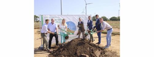 Beim Spatenstich für das Hybridkraftwerk aus Agri-PV und Wind bei Wien (von links): Christoph Grosssteiner (Ökostrom Produktions GmbH), Parndorfs Bürgermeister Wolfgang Kovacs, Burgenland-Landesrätin Daniela Winkler, Ökostrom-Vorstand Jan Häupler, Christoph Ehrenhöfer (Stadtwerke Hartberg), Julian Tiencken (Green Planet Projects) und Peter Kuntner (Ökostrom). Quelle: Ökostrom / Ben Leitner |