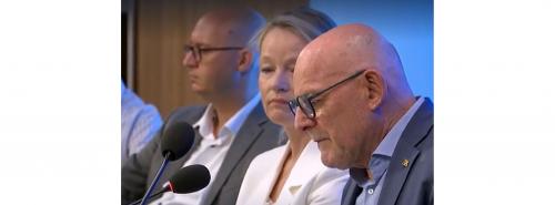 Verkehrsminister Hermann (vorne) und Umweltministerin Walker vor Journalisten Quelle: SWR |