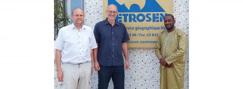 Gerhard Brunner, Werkleiter der Stadtwerke Roth (links) und Winfried Klinger, Geschäftsführer der Stadtwerke Schwabach, haben am 27. Mai 2022 mit Adamo Diallo, Generaldirektor der senegalesischen Petrosen, gesprochen Quelle: Stadtwerke Schwabach / oh |