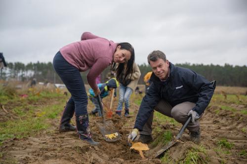 April möchte das Unternehmen in der Nähe der Gemeinde Dömitz (Mecklenburg-Vorpommern) eine Fläche von rund einem Hektar aufforsten. „Das ist eine Aktion für die ganze Familie. Schließlich ist der Klimaschutz eine Generationenaufgabe, bei der wir heute bestimmen, wie es künftig auf unserem Planeten aussehen wird“, erklärt Wemag-Vorstand Caspar Baumgart. Bereits zum elften Mal organisiert das Unternehmen diese Aktion, einschließlich Mittagsimbiss, wie es heißt. Baumgart will wieder selbst zum Spaten greifen (auf dem Foto mit Antje Habeck