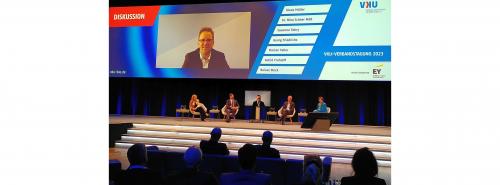 Um den Ausbau des Strom- und Gasnetzes für die Energiewende ging es in einer Diskussion auf dem Kongress der Verbandes der kommunalen Unternehmen (VKU) am 6. März 2023. Auf dem Podium diskutierten der Präsident der Bundesnetzagentur, Klaus Müller, mit Susanne Fabry, Mitglied des Vorstandes der Rhein Energie und Georg Friedrichs, Vorstandsvorsitzender der Gasag sowie Florian Feller, Vorsitzender der Initiative H2 vor Ort.