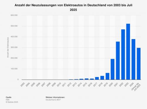 Prozent, wie das Kraftfahrtbundesamt (KBA) erklärt. Das Jahr 2024 sah in Deutschland etwa 380.600 Neuzulassungen von E-Autos. Damit lag die Zahl im Vergleich zum Jahr 2023 gut 27