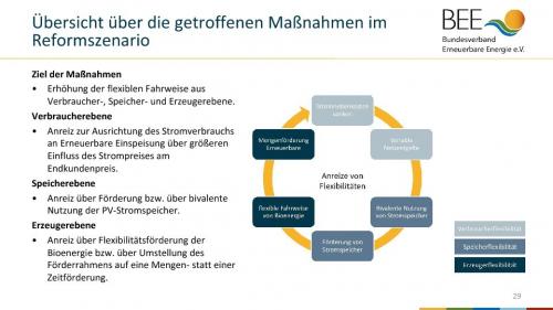 Die Studie konzentriere sich nicht nur auf den Strommarkt, sondern auch auf zentrale Aspekte der Versorgungssicherheit sowie der Finanzierung der Systemkosten des Energiesystems, unterstrich der BEE. Im Gegensatz zu anderen Studien zeige sich, dass die Energiewende im Stromsektor überwiegend durch Nutzung der regionalen Wertschöpfungspotenziale organisiert werden kann. Alle in der Studie getroffenen Maßnahmen wurden zudem durch die Kanzlei Becker Büttner Held juristisch geprüft.