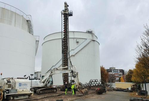 Baustart mit der Pfahlgründung: 70 Stahlbetonpfähle sichern das Fundament ab Quelle: FHW |
