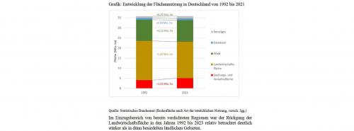 Entwicklung der Flächennutzung in Deutschland 1992-2021 (Für Vollansicht bitte auf das Bild klicken) Quelle: Destatis |