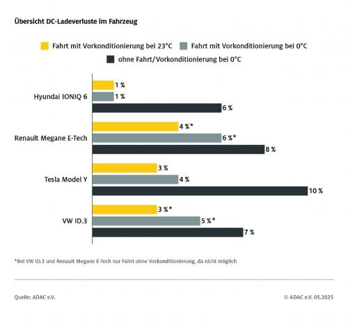 Die Ladeverluste beim Schnellladen von vier E-Auto-Modellen hat der Allgemeine Deutscher Automobil-Club (ADAC)
