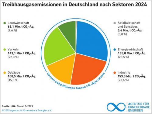 Im Jahr 2024 ist der Treibhausgasausstoß in Deutschland nach Meldung des Umweltbundesamts erneut zurückgegangen, allerdings nicht mehr so stark wie im Vorjahr. Ein deutlicher Rückgang wurde erneut in der Energiewirtschaft verzeichnet, er beruht auf einer geringeren Stromerzeugung aus Kohle, mehr Strom aus Erneuerbaren und einem erhöhten Stromimport. Neue Hochrechnungen der Entwicklung bis 2030 zeigten, dass das Ziel, die jährlichen THG-Emissionen bis dahin um 65 Prozent gegenüber 1990 zu mindern, erreichbar sei, wenn konsequent darauf hingearbeitet werde. Der Verkehr- und Gebäudesektor zeichnen sich hingegen durch deutliche Zielverfehlungen aus, die Klimaschutzbemühungen reichen hier nicht aus. Ohne stärkere Anstrengungen für eine klimafreundlichere Mobilität und Wärmewende drohen nicht nur hohe Strafzahlungen aufgrund des Verfehlens europäischer Vorgaben, sondern auch das Scheitern der mittel- und langfristigen Zielsetzung, Deutschland klimaneutral zu machen.