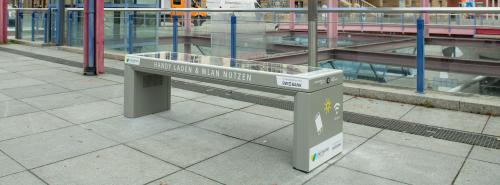 breiten Bänke verfügen über eine dunkle Oberfläche. Weil das im Sommer unangenehm warm beim Sitzen werden könnte, ist eine Luftkühlung in die Bänke integriert. Es gibt noch weitere Ausstattungsvarianten: Sensoren können zusätzlich Daten aus der Umgebung erfassen, etwa Feinstaubwerte oder den Lärmpegel.