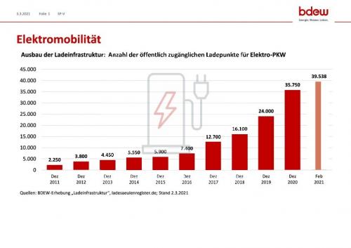 | Entwicklung der Anzahl der Ladepunkte für E-Mobile in Deutschland seit 2011 Bild: BDEW |