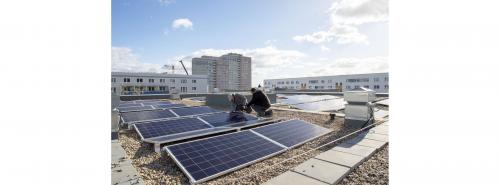 Eine Solardachanlage wird in Berlin-Lichtenberg errichtet Quelle: Howoge/Dombrowsky |