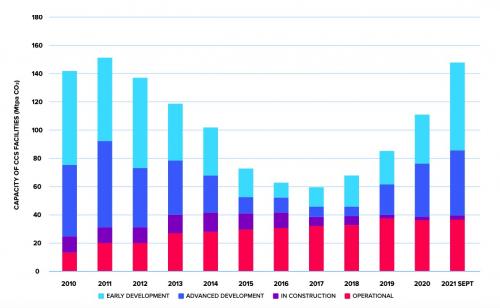 Entwicklung der weltweiten Projektkapazitäten zur Abscheidung