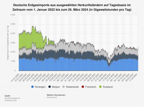 Neben Erdöl dient Erdgas in Deutschland als zentraler Brennstoff für die Primärenergieerzeugung. Da der Bedarf nach dem Rohstoff nicht durch die nationale Erdgasförderung gedeckt werden kann, ist das Land in einem hohen Ausmaß auf Einfuhren aus dem Ausland angewiesen. Norwegen ist aktuell (Stand: März 2024) die wichtigste Erdgasbezugsquelle für Deutschland, nachdem Russland im Laufe des Jahres 2022 dessen Erdgasexporte über die Nord Stream 1 Pipeline systematisch drosselte und Ende August 2022 vollständig einstellte.