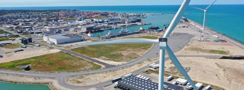 Am Hafen Hirtshals an Dänemarks Nordküste stehen bereits seit 2019 die ersten kommerziellen Windenergieanlagen des Landes Quelle: Port of Hirtshals |