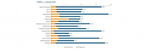 Auch die Kennzahlen zu Unterbrechungen der Stromversorgung je Bundesland wird veröffentlicht. Demnach lagen Baden-Württemberg, Brandenburg, Rheinland-Pfalz, Sachsen-Anhalt und Thüringen deutlich über dem Durchschnitt. Die geringste Unterbrechung der Stromversorgung war 2022 im Saarland gemeldet worden, mit 6,08