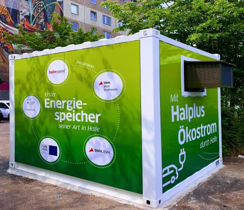 Die Hochschule Merseburg hat den Einsatz eines Energiespeichers mitentwickelt. In Halle kann so elektrische Energie zur Versorgung der Ladeinfrastruktur zeitversetzt genutzt werden.