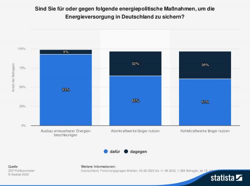 % eine Beschleunigung des Ausbaus von erneuerbaren Energien. Die längere Nutzung von Atom- oder Kohlekraftwerken wurde von 65 beziegungsweise 61