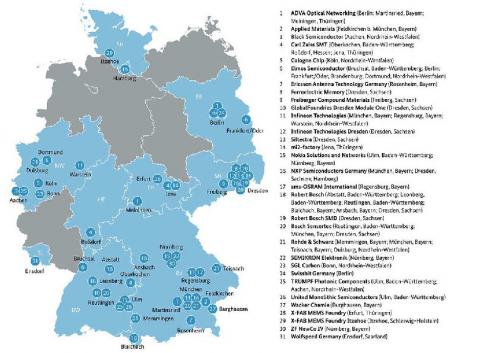 Standorte für die IPCEI Projekte zur Stärkung der Mikroelektronik in Deutschland - Zum Vergrößern bitte auf das Bild klicken Quelle: BMWK |