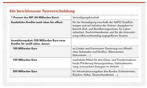 Viele Milliarden Euro an Krediten will die neue Bundesregierung aufnehmen, um Deutschland fit zu machen für die Zukunft und die Klimaschutzziele zu erreichen. Einstürzende Brücken, marode Schienen, schlappes Internet und tiefe Schlaglöcher zeugen von groben Versäumnissen in den letzten Jahrzehnten. Auch die Länder sollen in Höhe von 0,35