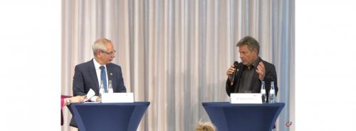 Das gemeinsame Gespräch zum Auftakt der Konferenz mit Gewerkschaftsführer Michael Vassiliadis verlief weitgehend konfliktfrei. Der IGBCE-Vorsitzende anerkannte, dass die Ampelkoalition den Rahmen für die weitgehend unstrittige Transformation schaffen wolle. Er rechnete es Habeck an, dass er die Versäumnisse der Vorgängerregierung offen benannt habe. "Wir hatten ja schon den Eindruck, mit der Energiewende fertig zu sein", so Vassiliadis.