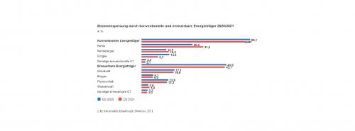 Stromeinspeisung durch konventionelle und erneuerbare Energieträger im dritten Quartal 2021 (zum Vergrößern bitte auf die Grafik klicken) Quelle: Destatis |