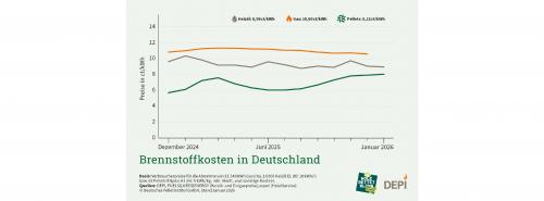 Verlauf der Brennstoffkosten in Deutschland von Dezember 2024 bis Januar 2026 (zum Vergrößern bitte auf die Grafik klicken) Quelle: Depi |