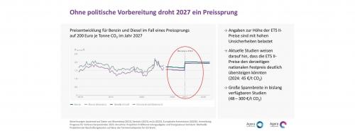 Beim Übergang vom Brennstoffemissionshandel zum neuen EU-CO2-Handel ETS 2 droht 2027 ein Preissprung - (Zum Vergrößern bitte auf die Grafik klicken) Quelle: Agora Energiewende |