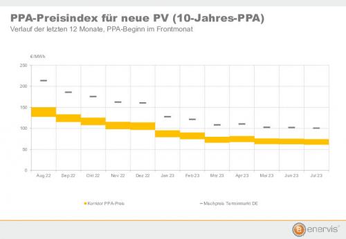 Das ergeben Berechnungen des Analysehauses Enervis Energy Advisors für den gemeinsamen PPA-Preisindex mit