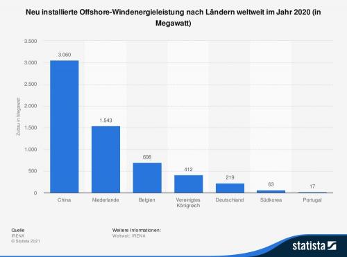 MW Offshore-Windenergieleistung zugebaut. An zweiter Stelle liegt die Niederlande mit über 1.500