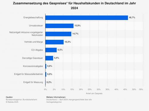 Prozent des gesamten Gaspreises für Haushaltskunden. Die Werte beruhen auf Angaben der