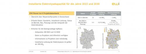 Installierte Elektrolysekapazität 2023 und 2030 im Vergleich (zur Vollansicht bitte auf die Grafik klicken) Quelle: EWI |