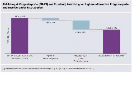 Mrd. kWh sinken. Das zeigten die aktuelle Berechnungen von Agora Energiewende in Zusammenarbeit mit Prognos und dem Wuppertal Institut. Im akuten Fall, dass die russischen Gasimporte in die EU komplett ausfallen, müsste Deutschland trotz einer europäischen Ersatzstrategie rund 290