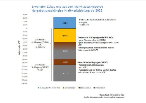 Kraftwerksentwicklung 2022-2025 Zum Vergrößern bitte auf die Grafik klicken. Quelle: Bundesnetzagentur |