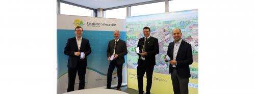 Stellten die neue App vor (von links): Wolfgang Dumm (Bayernwerk), Georg Hoffmann (Bürgermeister von Bodenwöhr), Thomas Ebeling (Landrat Schwandorf) und Fisnik Muasi (Bayernwerk) Quelle: Bayernwerk AG |