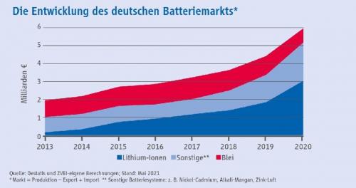 Mrd. Euro gestiegen und hat damit dessen Wachstum im Vergleich zu 2019 beschleunigt. „Trotz der Corona-Pandemie befindet sich der deutsche Batteriemarkt im Aufwärtstrend. Vor allem das Volumen des Markts für Lithium-Ionen-Batterien hat enorm zugelegt“, sagte Christian Eckert, ZVEI-Fachverbandsgeschäftsführer Batterien.