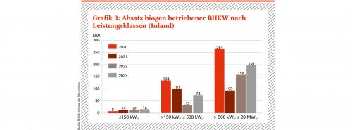 el eine Erholung (siehe Grafik 4). Nach einem deutlichen Rückgang im Jahr 2022 hat sich der Absatz 2023 wieder stabilisiert, was darauf hindeutet, dass der Rückgang im Vorjahr lediglich ein temporärer Ausreißer war, beziehungsweise durch die fehlende Meldung einzelner Groß-BHKW beeinflusst wurde, wie der Vergleich mit dem Marktstammdatenregister deutlich machte.
