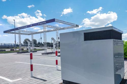 „Mit diesen Maßen stoßen wir im urbanen Umfeld natürlich viel seltener an städtebauliche Grenzen als bei der Installation einer Trafostation“, so Benjamin Constantin. Eine Trafostation sei aber bei herkömmlichen Ladestationen mit 320 kW ohne Batterie fast immer notwendig, um die erforderliche Netzanschlussleistung in Höhe der Ladeleistung zu gewährleisten. In Wohngebieten ist die Errichtung eines Transformators allerdings keine gangbare Option.