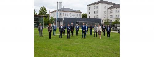Teilnehmer der Netzwerkkonferenz in Amberg (von lins nach rechts): Joachim Haller (1. Bürgermeister Markt Bodenmais), Cristina Pop (Werkleitung SER Straubing), Norbert Zösch (Stadtwerk Haßfurt GmbH), Dieter Möhring (1. Bürgermeister Gemeinde Aidausen), Prof. Dr. Raphael Lechner (Geschäftsführer des KoKWK), Prof. Dr.-Ing. Makrus Brautsch (Institutsleiter IfE), Andreas Meier (Landrat Lkr. Neustadt a. d. Waldnaab), Robert Ilg (1. Bürgermeister Stadt Hersbruck), Albert Füracker (MdL, Staatsminister der Finanzen und für Heimat), Johannes Edmüller (Geschäftsführer der Schlagmann Poroton GmbH & Co. KG), Josef Beyer (IfE), Bernhard Schmidhammer (Technischer Leiter Schlagmann Poroton), Prof. Dr. Andrea Klug (Präsidentin der OTH Amberg-Weiden), Rainer Wagner, Betriebsleiter des Energieverbunds der Stadt Freilassing, Thomas Söder (1. Bürgermeister Stadt Hallstadt) Quelle: Sandra Schecklmann |