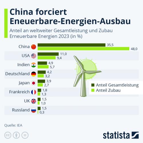 Prozent der weltweit installierten Leistung. Zum Vergleich: Deutschlands Solar-, Wind- und sonstige Kapazitäten kommen zusammengenommen aktuell auf etwa 150.000